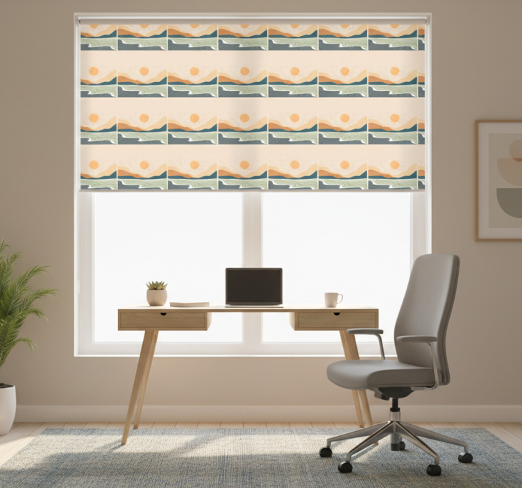 Elevate your workspace with the Abstract sunset mountains office roller blind. This exquisite office roller blind is not just a functional item; it serves as a captivating focal point that inspires creativity and tranquility. Imagine working surrounded by the serene beauty of a sunset over mountains, inviting a sense of peace and productivity into your daily routine. Perfect for those looking to enhance their office decor, this roller blind is a must-have!