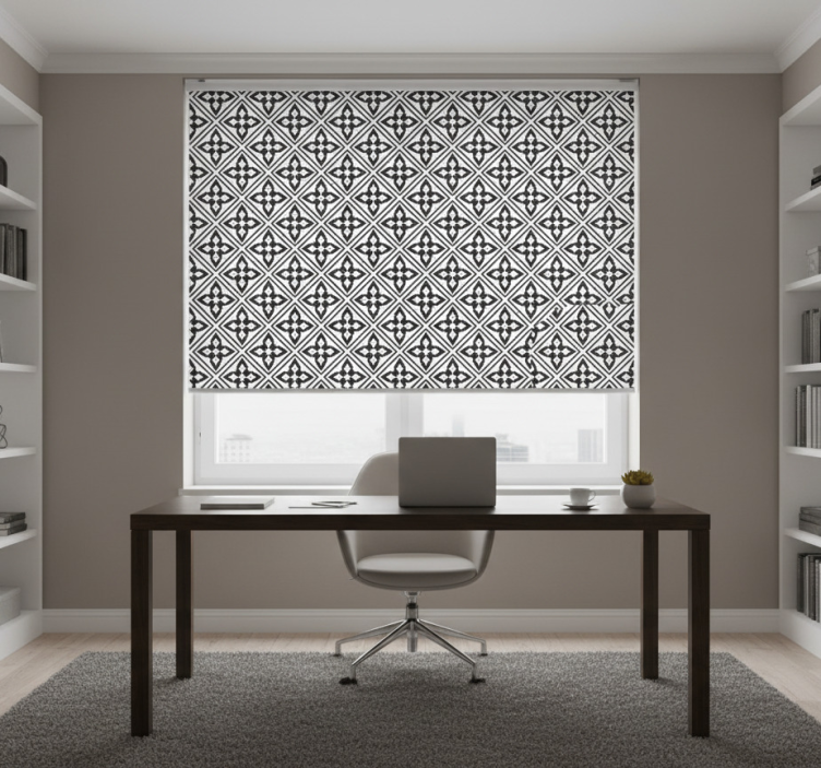 Black roller blind with floral pattern