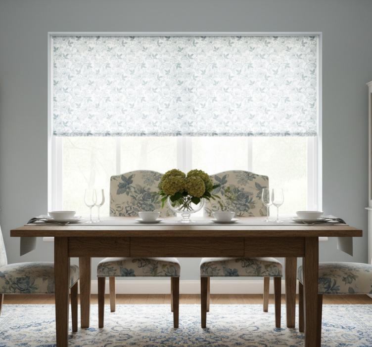 Reference: E6575Transform your living space with our Dining room roller blind in floral grandmillennial style, where whimsical floral patterns meet vintage charm. This beautifully designed roller blind enhances your decor with its intricate floral prints, ensuring a delightful and inviting atmosphere in any dining room. Enjoy the perfect balance of light and privacy, while the easy assembly and disassembly features make maintenance a breeze!