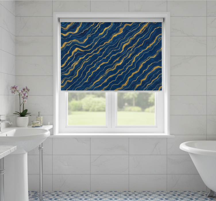 Blue roller blind in blue and gold marble
