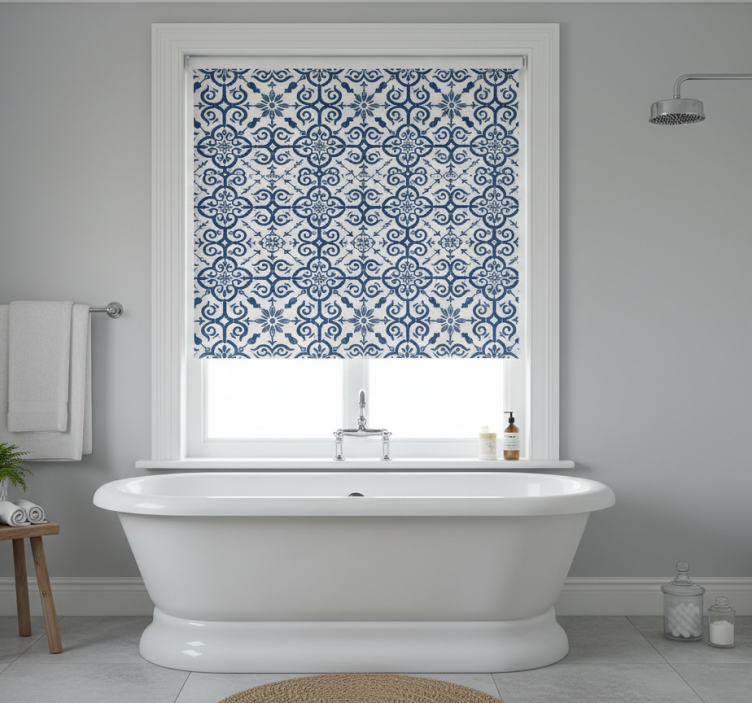 Blue roller blind in moroccan blue tile design