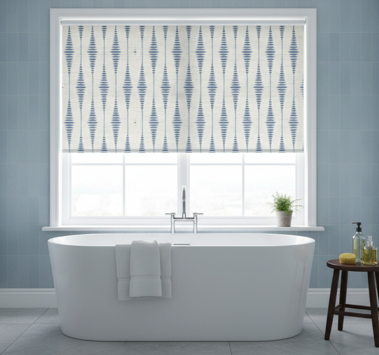 The Blue roller blind rabaul ikat in blue and beige Blue roller blind is a perfect choice for anyone looking to elevate their interior design. Its unique ikat pattern brings a sense of artistry and sophistication to your space. Imagine transforming your living area or bedroom into a serene oasis with this stunning blind, which not only adds a pop of color but also protects your room from harsh sunlight. Let your personality shine through your home with this beautiful piece!