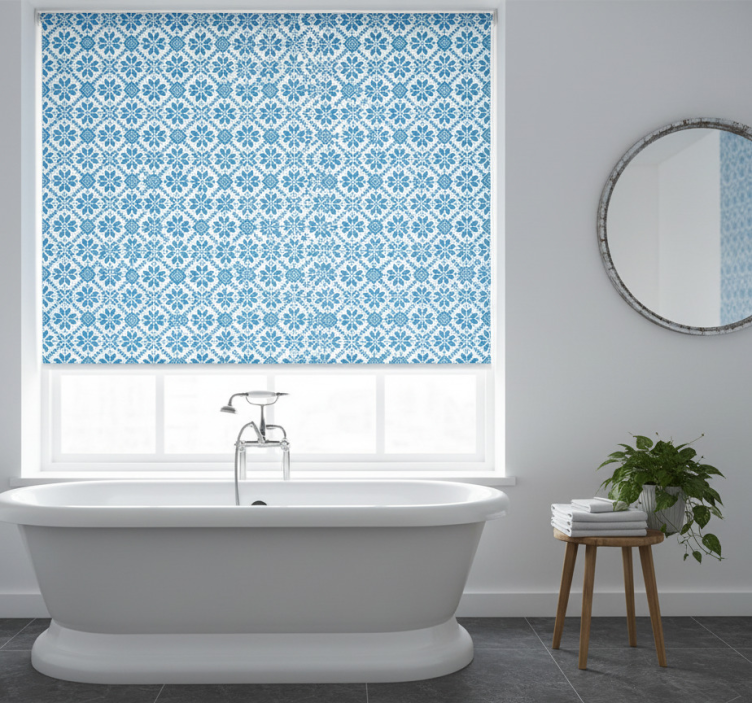 Blue roller blind with blue tile design