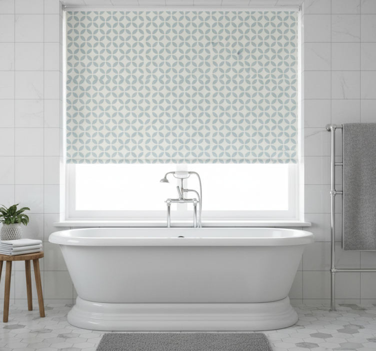 Blue roller blind with circular pattern design