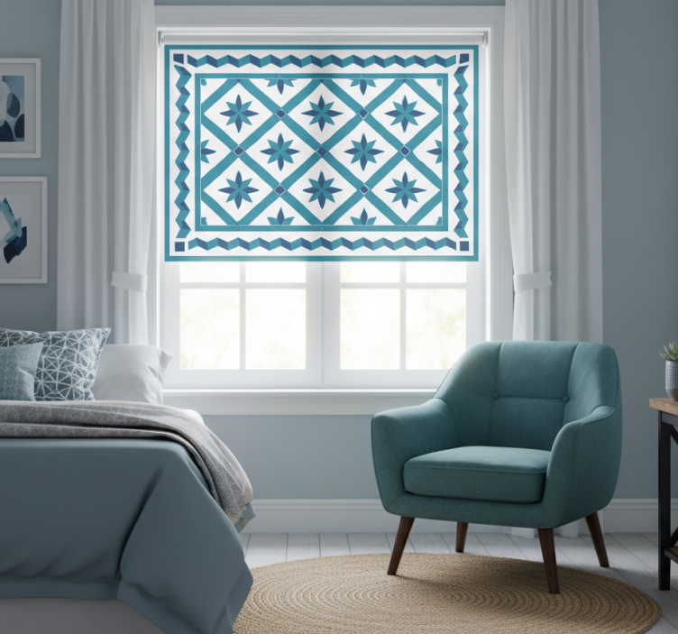 Transform your living space with our Blue roller blind with geometric star pattern! This enchanting Blue roller blind serves not only as a functional window covering but also as a stylish statement piece. Elevate your home decor effortlessly and create a cozy ambiance that inspires relaxation and creativity. Its unique design adds character to any room, making it an essential element for those who appreciate both aesthetics and practicality!