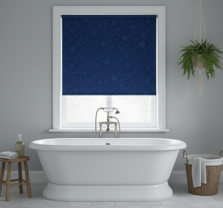 Reference: E9042Introducing our stunning Blue roller blind with navy blue floral design! This beautiful roller blind features an enchanting navy blue floral pattern that brings sophistication and elegance to any space. The intricate design is not only visually appealing but also adds a touch of nature to your interior decor, making it a perfect addition to both modern and traditional settings. With easy assembly in just 2 clicks, this roller blind is designed for effortless installation and maintenance.