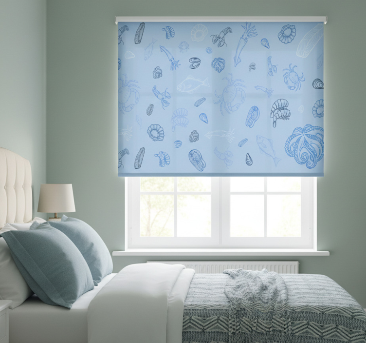 Blue roller blind with seafood design
