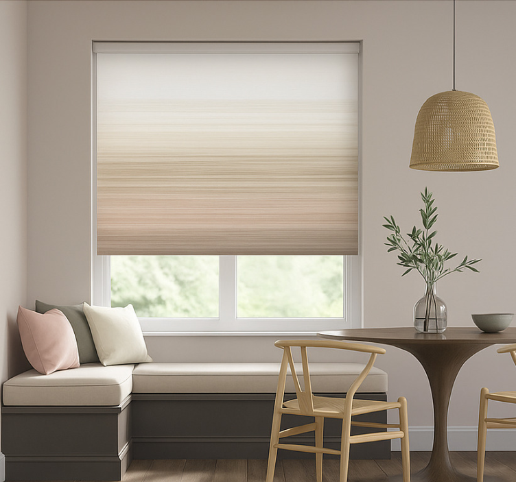 Reference: E5889Transform your dining space with our Earthy natural tones dining room roller blind, beautifully designed to harmonize with your home decor. This roller blind features easy assembly in just two clicks while providing a stunning visual appeal that enhances any room. Its easy-to-clean fabric allows for effortless maintenance, and the quick disassembly feature ensures your windows can be cleaned swiftly. Protect your interiors from direct sunlight while enjoying the added privacy it offers when lowered. This versatile blind enables you to regulate room temperature and enhances security, allowing you to see outside without being seen.