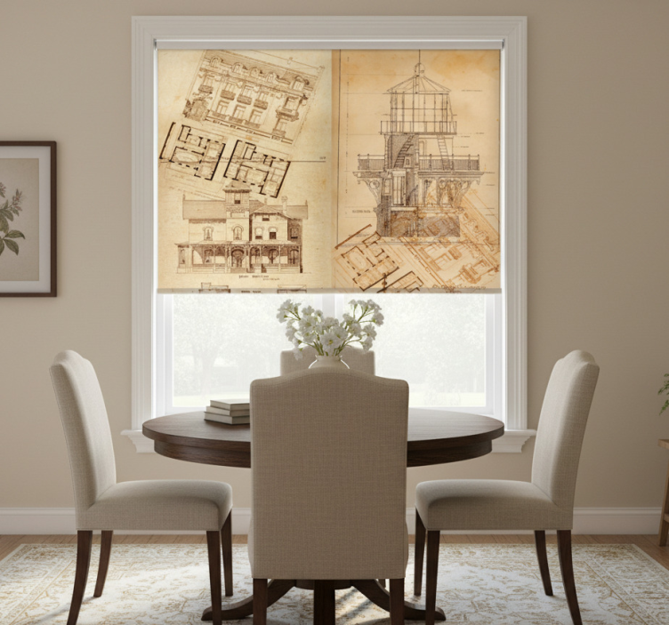 Dining room roller blind architectural gem
