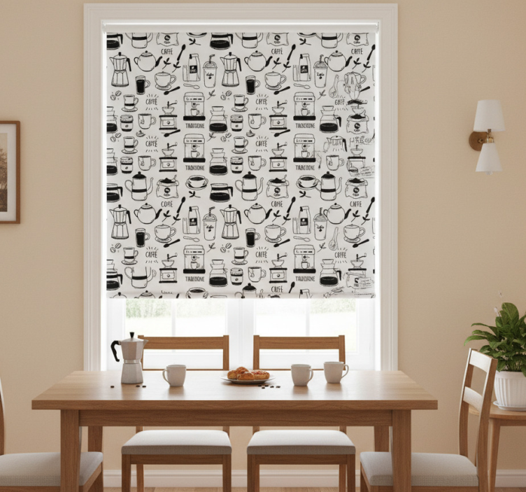Dining room roller blind coffee break
