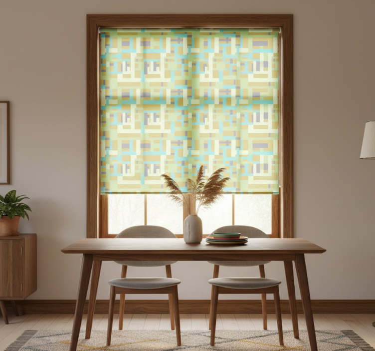 Transform your space with the Dining room roller blind colorful retro rectangle pattern dining room roller blind. This eye-catching design adds character and charm to any dining room, making it the perfect choice for those who appreciate unique decor. Its vibrant colors and retro rectangle pattern create a joyful atmosphere, inspiring delightful meals and conversations. Let your dining area shine with this exquisite roller blind!