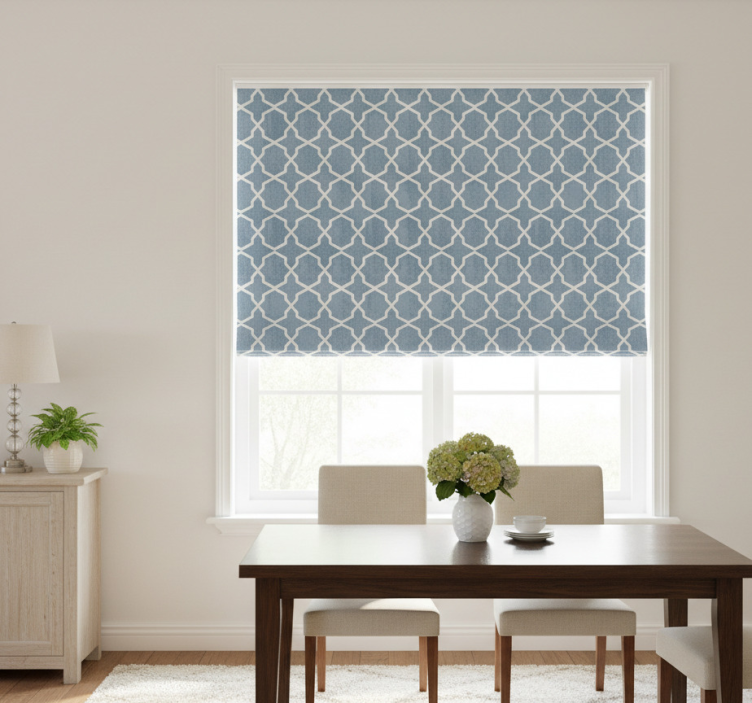Dining room roller blind gray hamptons pattern