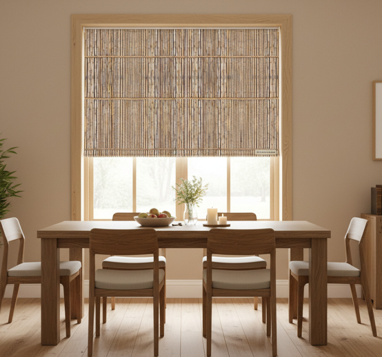 The Dining room roller blind handcrafted bamboo look dining room roller blind is the perfect solution for anyone looking to elevate their interior design. This roller blind brings warmth and sophistication to your dining room, making it a welcoming space for family and guests. Its natural bamboo appearance adds an organic touch that complements a variety of decor styles. By using this roller blind, you not only create an inviting atmosphere but also enjoy the functional benefits of light control and privacy. Let your dining area shine with this beautiful addition!