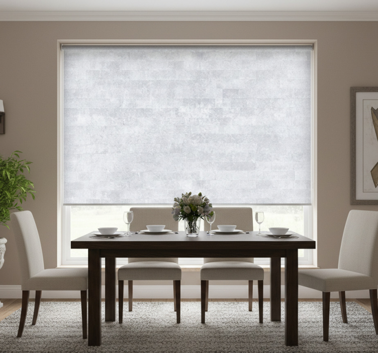 Reference: E6721Transform your living space with our stunning Dining room roller blind in aged gray brick pattern. This exquisite design features an aged gray brick pattern that adds a touch of rustic charm to any dining room. Its versatile aesthetic complements a variety of interior styles while ensuring that your home remains stylish and modern. Made with easy assembly in 2 clicks, this roller blind is also easy to clean, making it a practical choice for busy households. Enjoy the benefits of protecting your room from direct sunlight while providing privacy when lowered. This product not only regulates room temperature but also enhances security, allowing you to see outside without being seen.