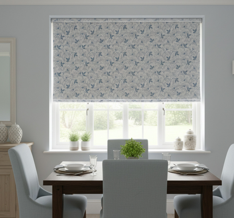 The Dining room roller blind in floral blue hamptons dining room roller blind is not just a window covering; it is a statement piece that elevates your interior decor. Imagine the beauty of soft floral patterns creating a serene ambiance in your dining area! This roller blind adds charm and sophistication, making your space feel inviting and warm. It's perfect for those who appreciate the aesthetics of classic yet modern design, allowing you to enjoy both beauty and functionality.