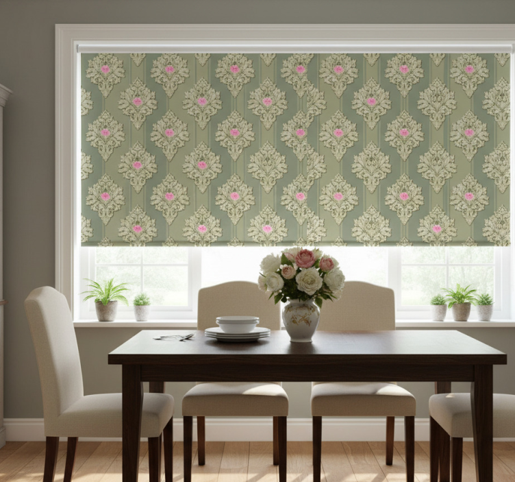 Dining room roller blind in french green vintage pattern