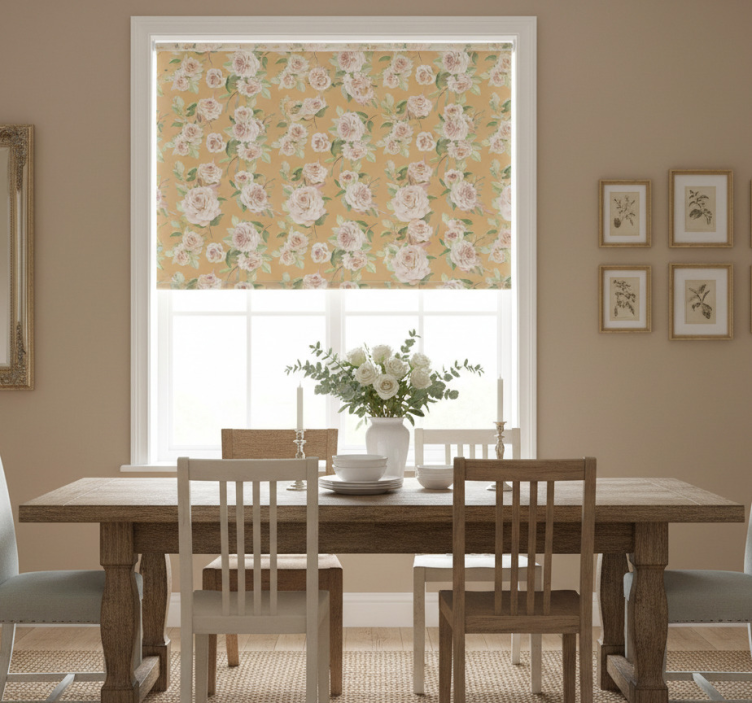 Dining room roller blind in french provincial roses pattern