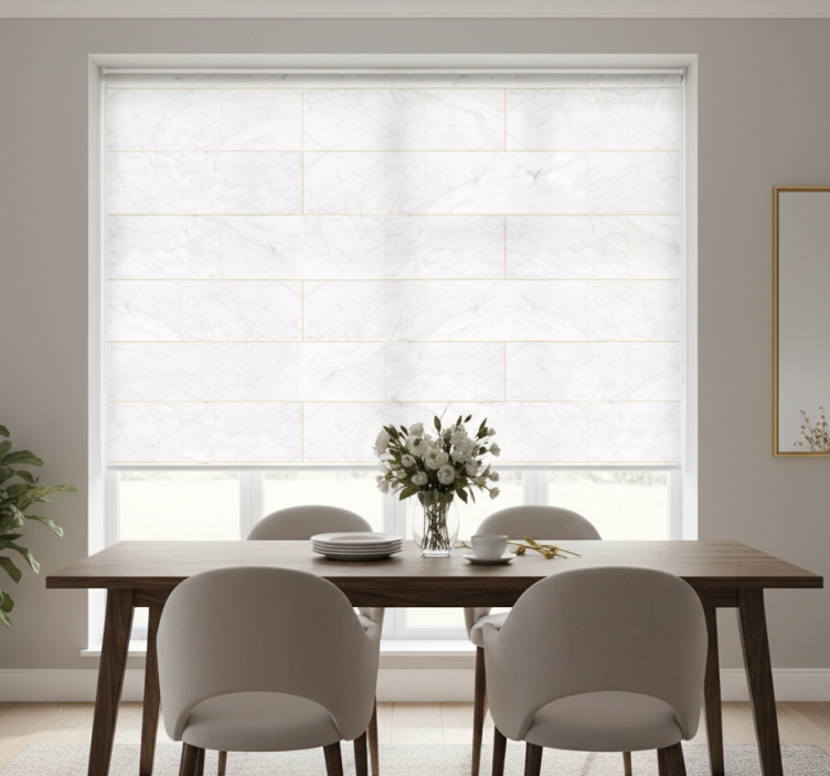 Reference: E6536Introducing our stunning Dining room roller blind in gray gold marble, a perfect blend of elegance and functionality! This exquisite design features a luxurious gray and gold marble pattern that effortlessly enhances your dining space. With easy assembly in just 2 clicks, simple cleaning, and quick disassembly, this roller blind allows you to maintain your window and surroundings with ease. Not only does it protect your room from direct sunlight, but it also provides privacy when lowered, regulates room temperature, and adds a touch of sophistication to your home decor.
