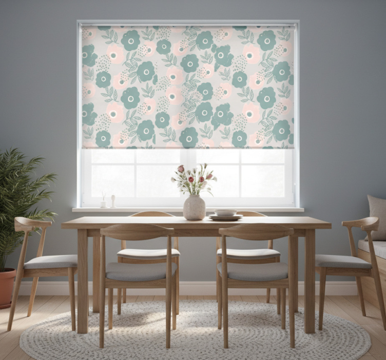 Reference: E6620Transform your living space with our Dining room roller blind in pink and blue watercolor flowers. This exquisite design showcases a delicate array of watercolor flowers in soft pinks and blues, creating a serene and inviting atmosphere. The stunning floral patterns not only enhance the aesthetic appeal of your dining room but also bring a touch of nature indoors. Enjoy features such as easy assembly in just two clicks, effortless cleaning, and privacy control while adding a vibrant splash of color to your home decor!