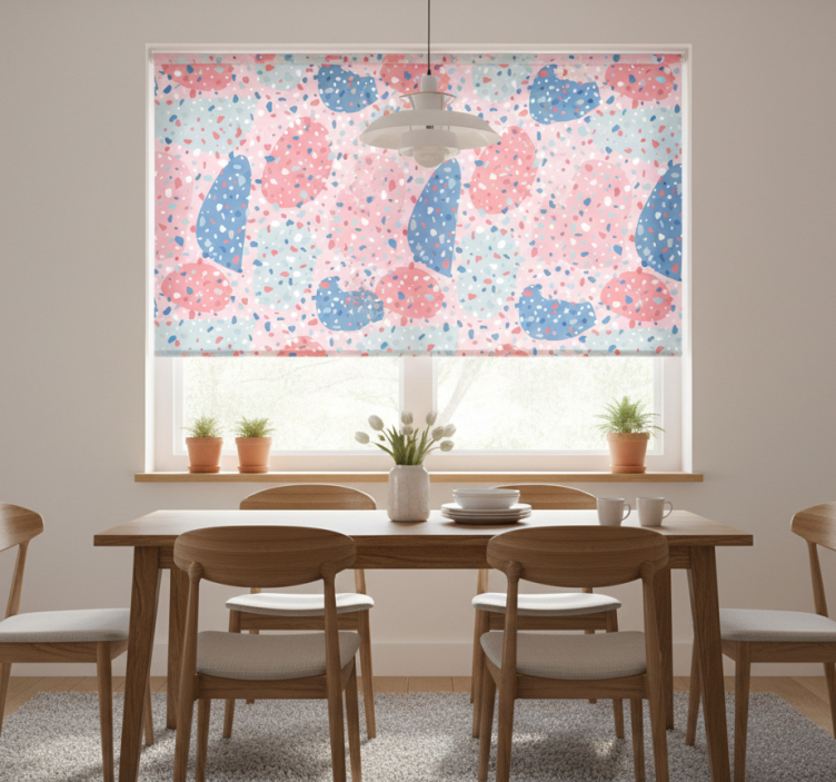 Dining room roller blind in pink terrazzo