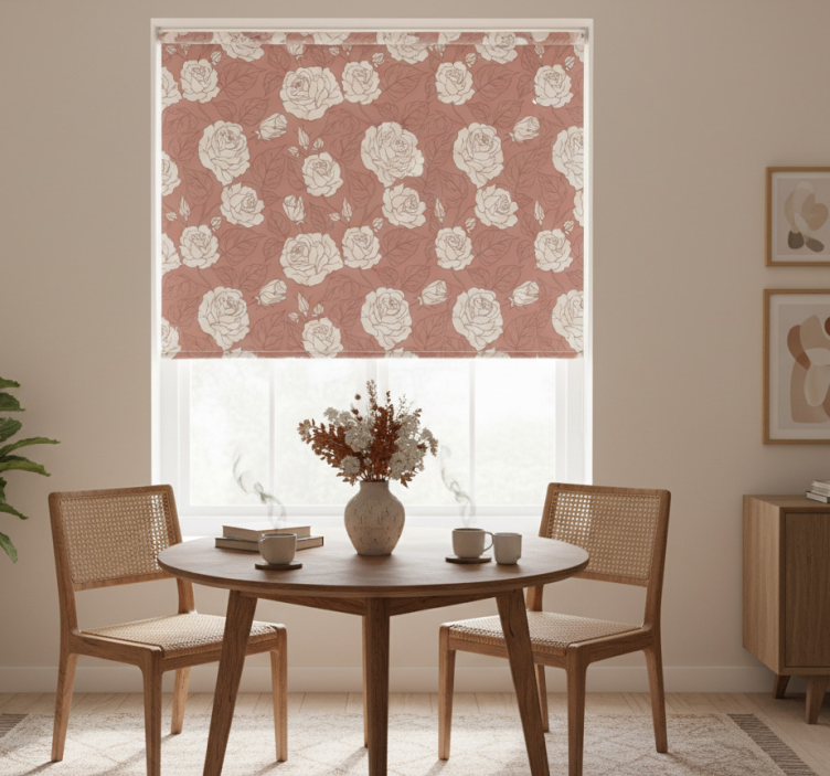 Dining room roller blind in terracotta big roses