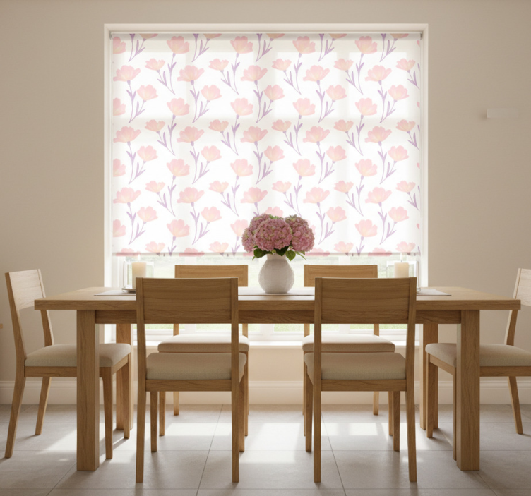 Dining room roller blind minimalistic watercolor flowers