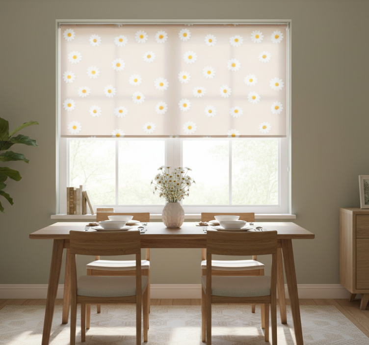 The Dining room roller blind modern daisy design dining room roller blind is more than just a window covering; it is a statement piece that enhances the overall decor of your dining area. With its vibrant daisy motif, this blind will uplift your home’s aesthetic, making it a delightful focal point that invites warmth and cheer. Imagine hosting dinner parties or family gatherings under the soft, diffused light that this beautiful roller blind provides, creating an inviting atmosphere for everyone!