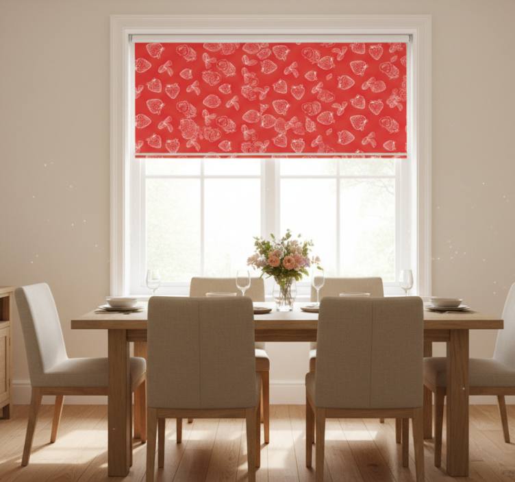 The Dining room roller blind seamless strawberry design dining room roller blind is an inspiration for homeowners looking to elevate their decor. With its charming strawberry pattern, this roller blind adds a pop of color and personality to your dining area, creating a warm and inviting atmosphere. Imagine hosting friends and family in a space that reflects your unique style and taste, making every meal feel special!