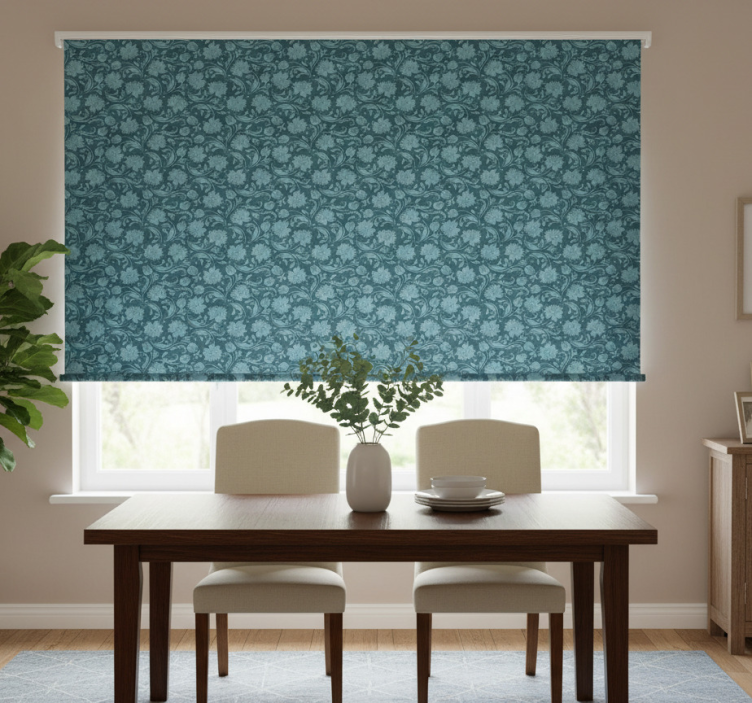 The Dining room roller blind secret garden blue dining room roller blind is more than just a window covering; it is a statement piece that elevates your decor. Imagine hosting dinner parties or family gatherings with this enchanting blind framing your windows, creating a warm and inviting atmosphere. It adds a touch of charm and personality to your dining area, making every meal more enjoyable and visually appealing.