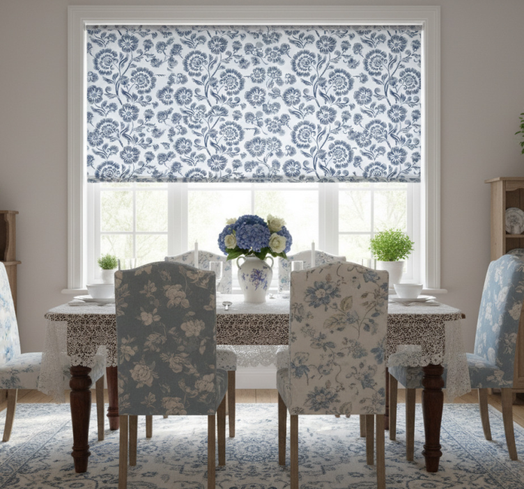 The Dining room roller blind with blue floral design dining room roller blind is not just a window covering; it’s a statement piece for your home! Imagine the serene ambiance created by the beautiful blue floral motifs, effortlessly uplifting the decor of your dining area. This roller blind brings a touch of nature indoors, inspiring relaxation and warmth during your family meals or gatherings. Embrace the transformation and let your dining room become a reflection of your personality!