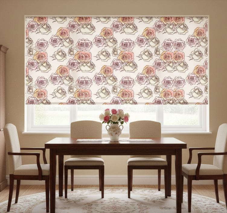 Dining room roller blind with english roses pattern