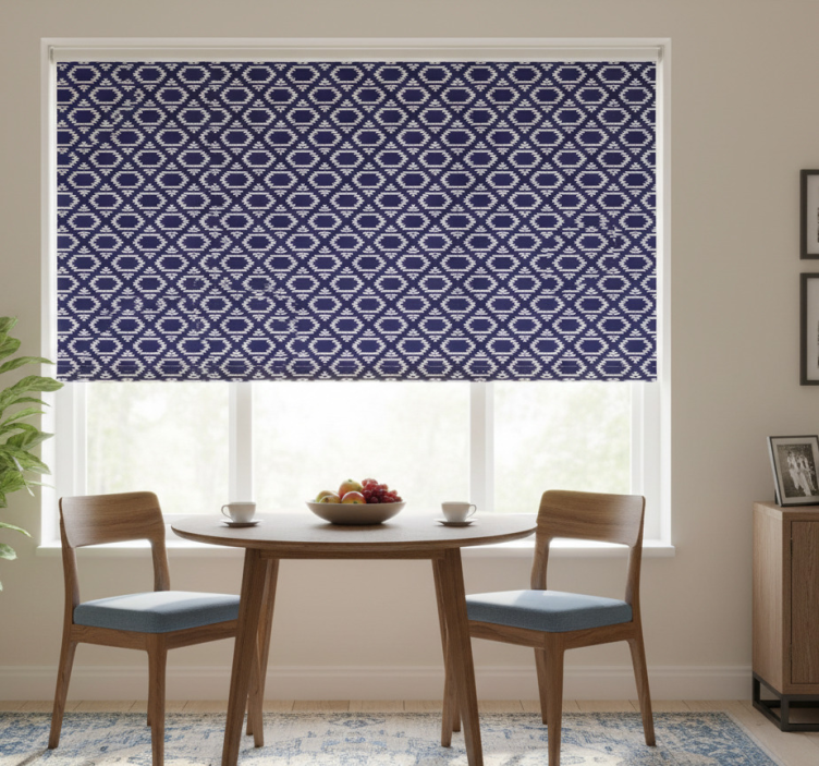 The Dining room roller blind with geometric hexagons dining room roller blind serves as an inspirational decor piece that elevates your dining area. Its striking geometric design can transform any mundane space into a chic and inviting atmosphere. This roller blind enhances your home's decor while providing essential privacy when lowered, making it a perfect addition for those who value both style and functionality!