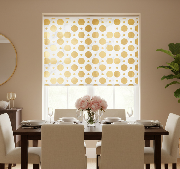 Dining room roller blind with gold marble dots