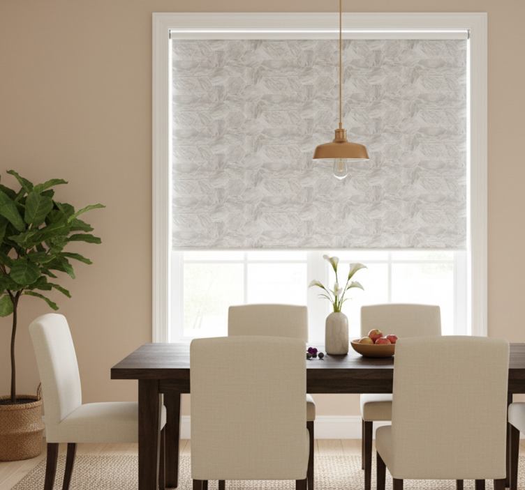 - Dining room roller blind with gold marble hexagons