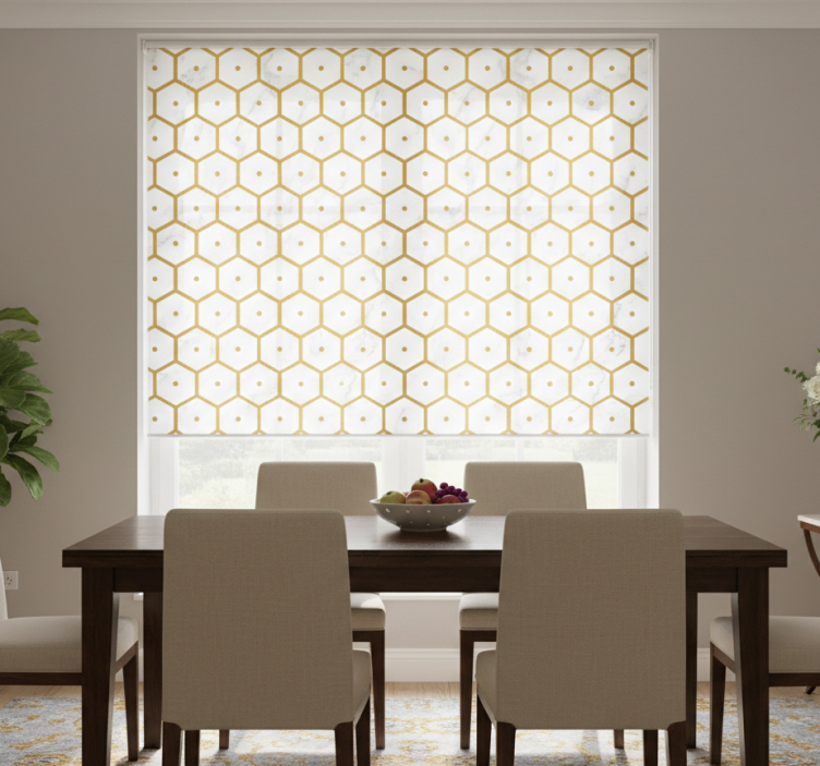 The Dining room roller blind with hexagonal gold marble dining room roller blind is the ultimate choice for those looking to elevate their home decor. Its unique design transforms any dining area into a stylish and inviting setting, making it an ideal backdrop for gatherings and family meals. By incorporating this roller blind, you can create a cozy atmosphere that resonates with warmth and elegance. Embrace the beauty of your home with this stunning addition!