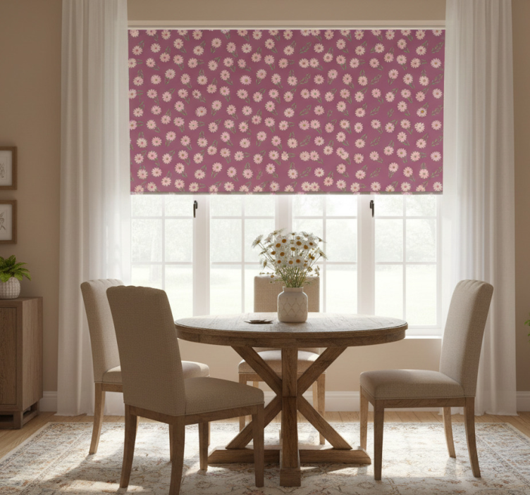 The Dining room roller blind with little pink daisies dining room roller blind is an exceptional choice for decorating your dining area as it effortlessly blends functionality with aesthetic appeal. Imagine the warmth and charm that these little pink daisies bring, creating a welcoming atmosphere for family and friends. This roller blind not only enhances the beauty of your space but also protects it from harsh sunlight and offers privacy when needed. Elevate your décor and let your personality shine through with this delightful roller blind!