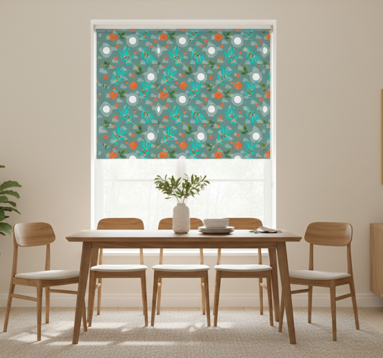 Floral geometric dining room roller blind