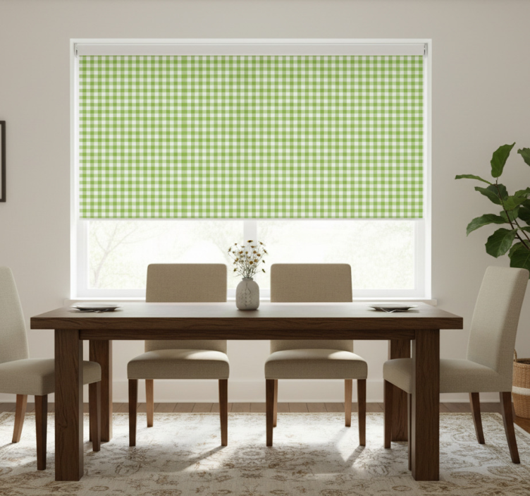 Gingham check pattern dining room roller blind