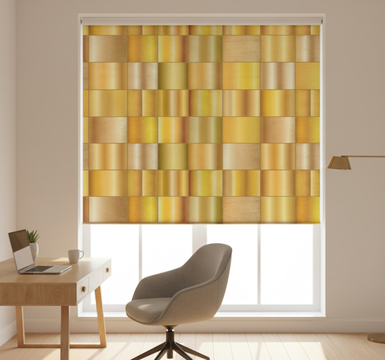 The Gold yellow blocks office roller blind is an exceptional choice for decoration, seamlessly enhancing the aesthetic of any room. Its unique design adds a splash of color and personality, transforming bland spaces into vibrant, inspiring environments. Imagine working in a space that not only looks good but feels good too! This roller blind helps regulate room temperature, provides privacy when lowered, and improves overall room decor. Let your workspace radiate positivity and motivation with this stunning addition!