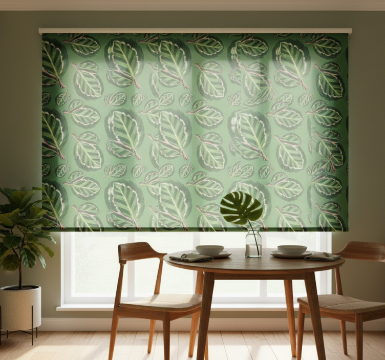 Green maranta dining room roller blind