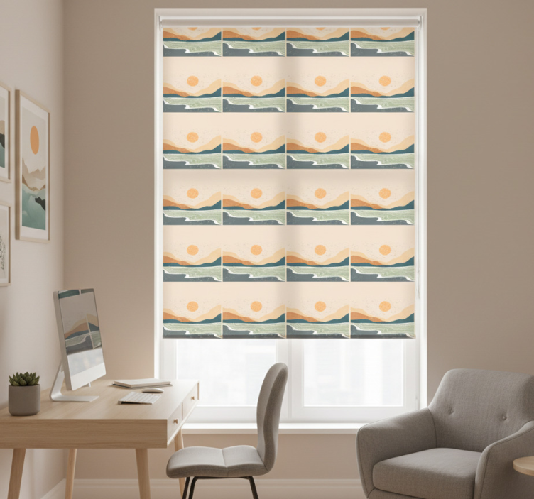 The Home office roller blind abstract sunset mountains home office roller blind is the ideal choice for anyone looking to elevate their interior design. This blind does more than just block out light; it adds a touch of artistic elegance to your workspace. Imagine working under a beautiful sunset scene that inspires creativity and calmness. The blend of colors and abstract forms can transform a mundane office into a vibrant and inviting environment, making your work hours more enjoyable!
