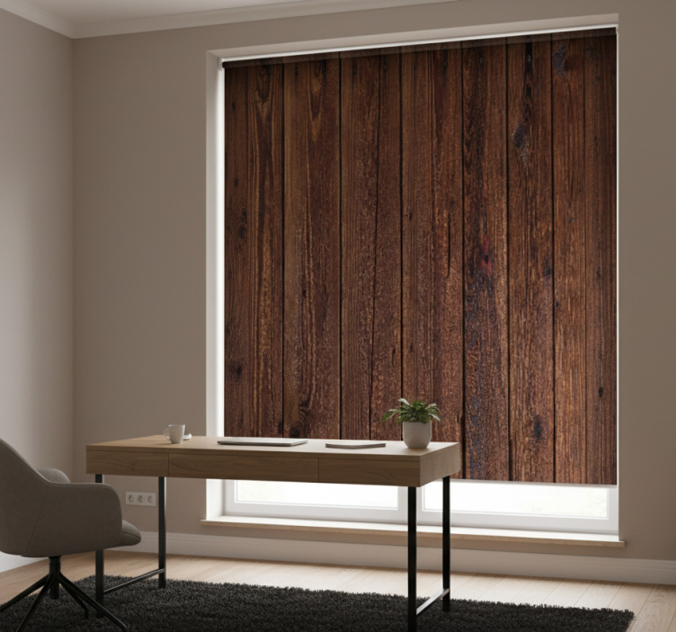 The Home office roller blind dark brown rustic wood home office roller blind is an ideal choice for those looking to elevate their home office decor. Its rich dark brown color and rustic wood design immediately catch the eye, creating a warm and inviting atmosphere. This roller blind not only serves a functional purpose but also acts as a statement piece that reflects your personal style. Let your workspace inspire creativity and productivity with this exquisite blind!