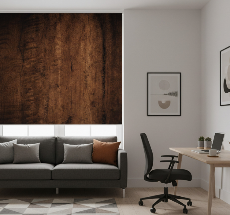 The Home office roller blind dark wood finish home office roller blind serves as an ideal decorative element for your workspace. Its elegant design not only improves the aesthetic appeal of your home office but also creates an inviting atmosphere. With the option to customize measurements and choose from three different textures, you can tailor the blind to suit your unique style and needs. Elevate your home office decor while enjoying the practical benefits of enhanced privacy and sun protection!