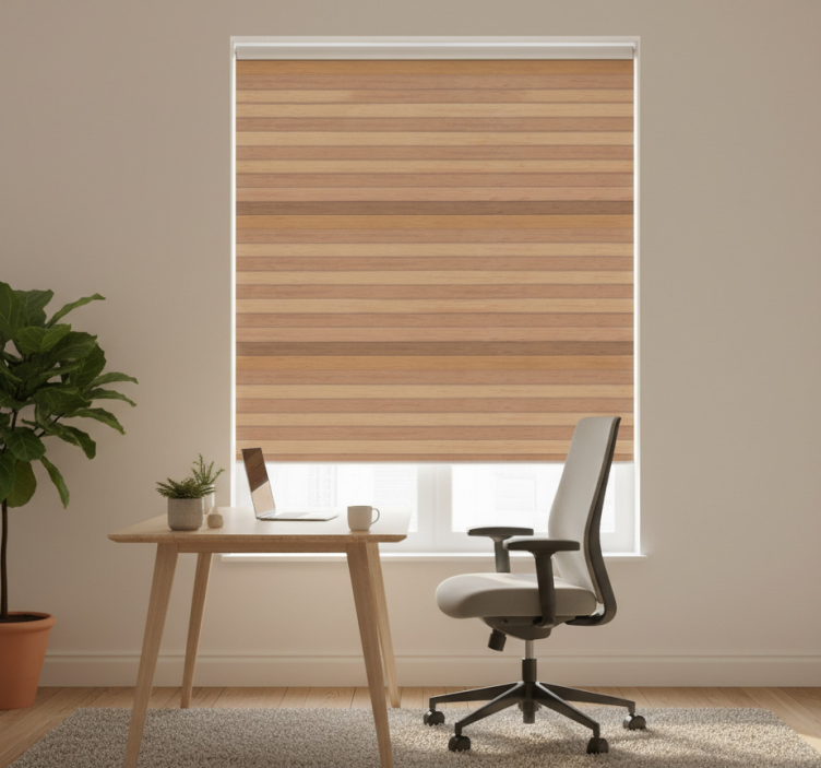 The Home office roller blind elegant rustic wood planks home office roller blind is the perfect addition to any workspace, infusing your home office with style and sophistication. Its rustic wood design creates a calming atmosphere, making it easier to focus and be productive. Not only does it serve a functional purpose, but it also enhances the overall aesthetic of your office, making it a more inviting place to work. Elevate your decor and inspire creativity with this stunning roller blind!