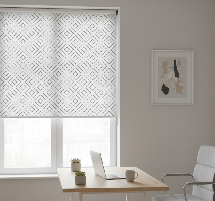 Home office roller blind white geometric pattern