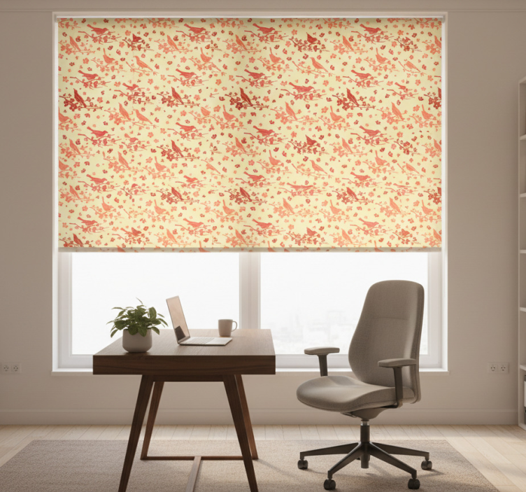 Home office roller blind with oriental trees and birds