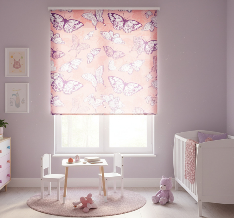 - Kids roller blind purple and pink butterfly pattern