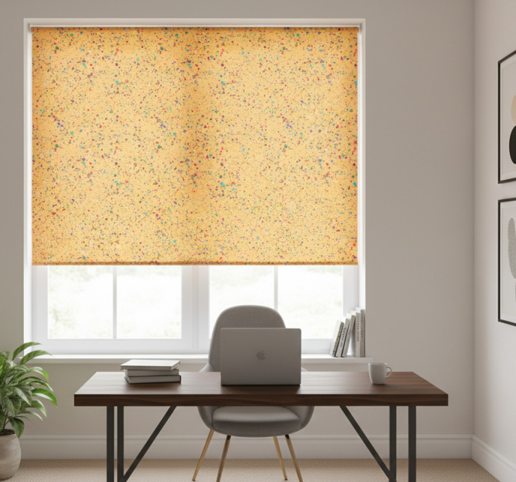 The Little color splashes home office roller blind is an ideal choice for anyone looking to elevate their space. Its bright and cheerful design injects personality into your home office, making it a delightful environment for both work and creativity. This roller blind not only improves the room's decoration but also creates a cozy ambiance that makes you feel inspired to work!
