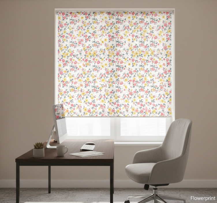 The Office roller blind flowerprint ifuru white office roller blind transforms any workspace into an inspiring environment. Its charming floral design adds a refreshing touch, making your office feel more inviting and lively. Create a unique atmosphere that stimulates creativity and productivity. This roller blind not only enhances the visual appeal of your office but also contributes to a positive mood, making it an essential element for any modern workspace.