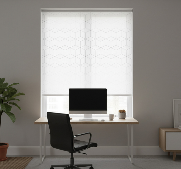 Office roller blind geometric cube design
